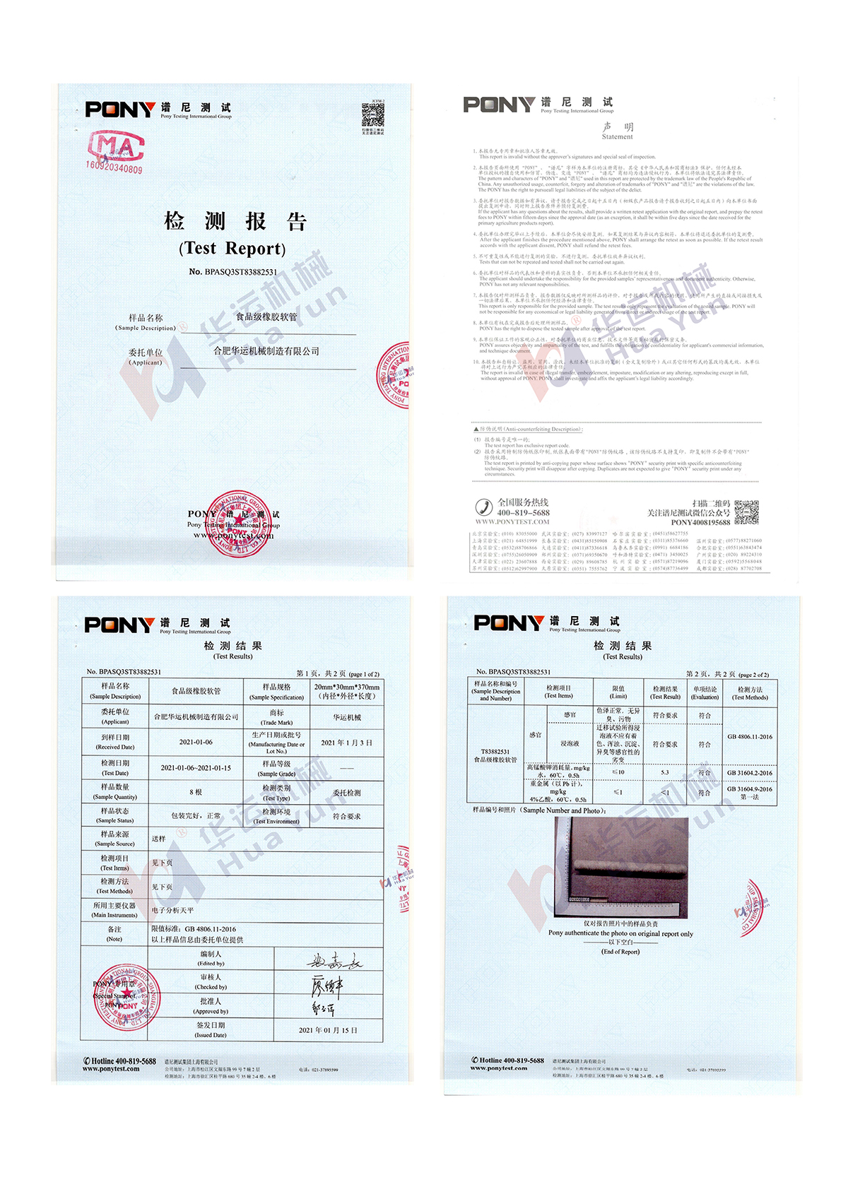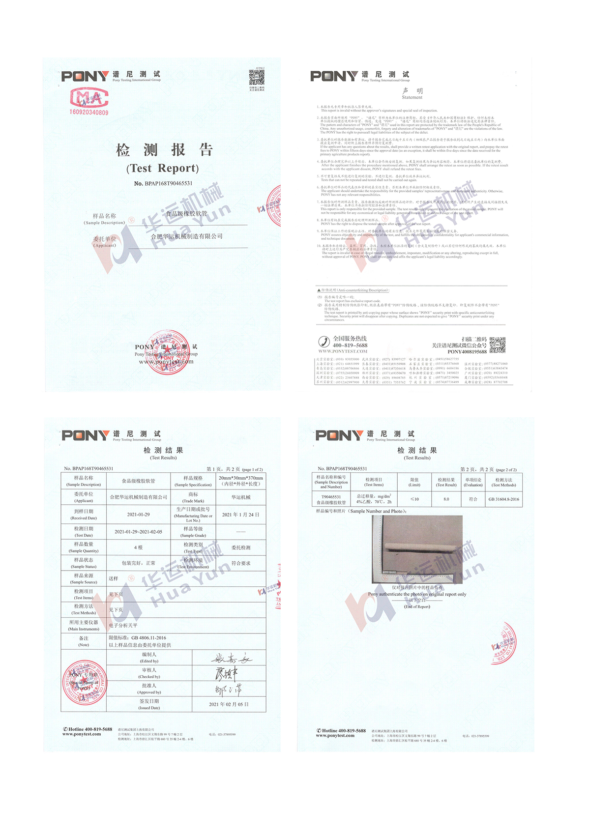 合肥華運系軟管泵行業標準(JB/T 12753-2015)制定單位,華運軟管泵擁有中國發明專利三項(專利號:ZL 2023 1 1558788.3;ZL 2017 1 0146816.9;ZL 2017 1 0146817.3),一項美國發明專利(專利號:US 11,384,750 B2),一項印度發明專利(專利號:485762)。同時,合肥華運自主生產的食品級軟管通過譜尼PONY測試。華運軟管泵廣泛運用于氨基酸、酵母、淀粉、淀粉糖、果汁、奶茶、醬料、調味料、腌制食品等食品類物料的輸送。