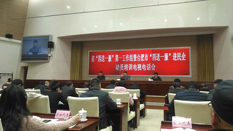 2018年12月19日合肥華運機械制造有限公司受邀參加省四送一服**工作組暨四送一服進民企動員培訓電視電話會。